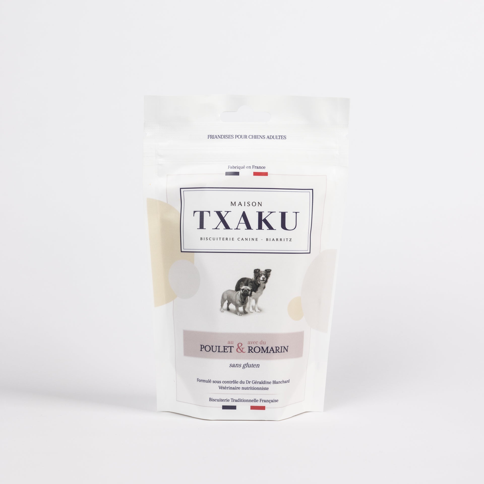 Découvrez dès aujourd'hui le meilleur de nos biscuits pour chiens avec notre recette poulet romarin. Offrez, dès maintenant, à votre compagnon à quatre pattes, une friandise qu'il n'oubliera pas !
